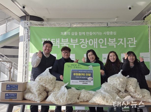 태산뉴스 이동욱 기자 | 평택북부장애인복지관은 2월 3일 현대자동차 송탄지점 김재원 후원자로부터 지역사회 장애 당사자 및 장애인 가정의 따뜻한 설 명절을 위한 떡국떡을 후원받았다.