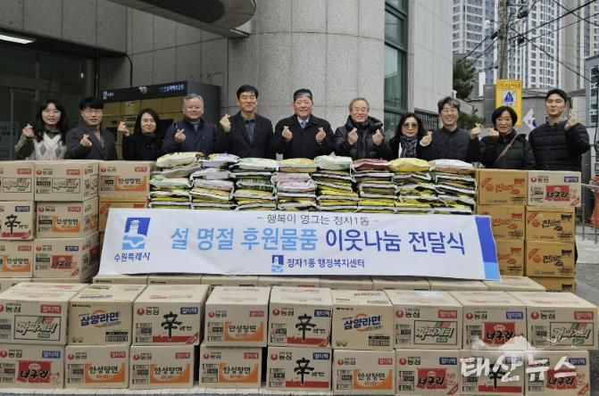 태산뉴스 이동욱 기자 | 정자1동 행정복지센터는 2월 4일 설 명절을 앞두고 관내 단체, 기업, 개인 등에서 기탁한 성금과 물품을 어려운 이웃들에게 전달하는 ‘설 명절 이웃사랑 나눔 전달식’을 개최했다.