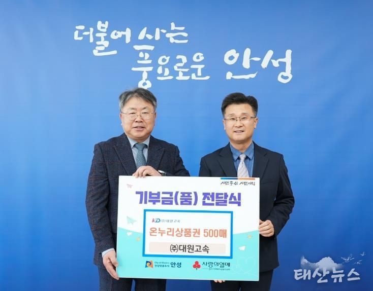 태산뉴스 이동욱 기자 | 안성시는 2월 3일 대원고속으로부터 지역의 어려운 이웃을 돕기 위한 온누리상품권 500매(500만 원 상당)를 전달받았다고 밝혔다.