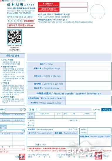 태산뉴스 이동욱 기자 | 이천시는 맞춤형 세무 행정 실현과 다문화 포용 정책 추진사업의 일환으로 경기도 최초 외국인 대상 다국어(영어·중국어·베트남어) 세외수입 체납고지서를 발송하고, 언어장벽으로 인한 세무 행정 사각지대 해소에 나선다고 밝혔다.