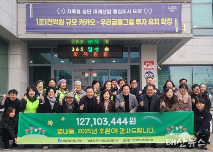 태산뉴스 이동욱 기자 | 남양주시는 별내행정복지센터에서 지난 한 해 동안 지역사회의 적극적인 참여로 모인 후원금과 후원물품이 총 1억 2,710만 원 규모로 집계됐다고 5일 밝혔다.
