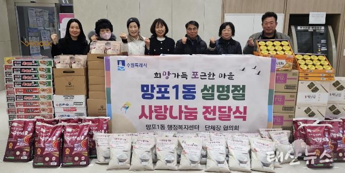 태산뉴스 이동욱 기자 | 수원시 영통구 망포1동은 지난 5일, 주민자치회·통장협의회·지역사회보장협의체·바르게살기운동위원회 등 4개 단체장협의회장이 참석한 가운데 관내 어려운 이웃을 지원하기 위한 설 명절 이웃사랑 나눔 전달식을 개최했다.