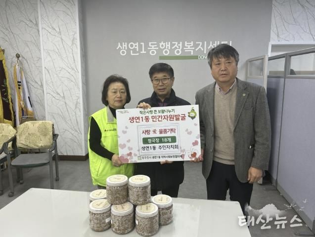 태산뉴스 이동욱 기자 | 동두천시 생연1동 행정복지센터는 지난 5일, 생연1동 주민자치회가 직접 만든 ‘사랑 愛 청국장’을 관내 경로당 어르신들에게 전달했다고 밝혔다.