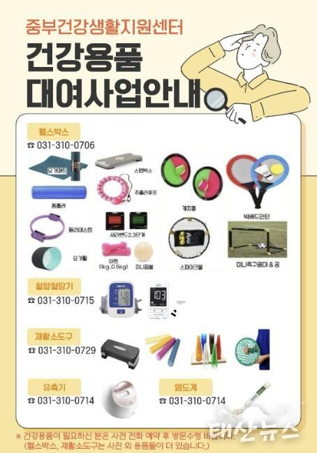 태산뉴스 이동욱 기자 | 시흥시 중부건강생활지원센터는 시민의 건강생활 실천을 돕기 위해 헬스박스, 혈압ㆍ혈당, 염도계, 재활 소도구, 유축기 등 다양한 건강용품 대여 사업을 운영하고 있다.