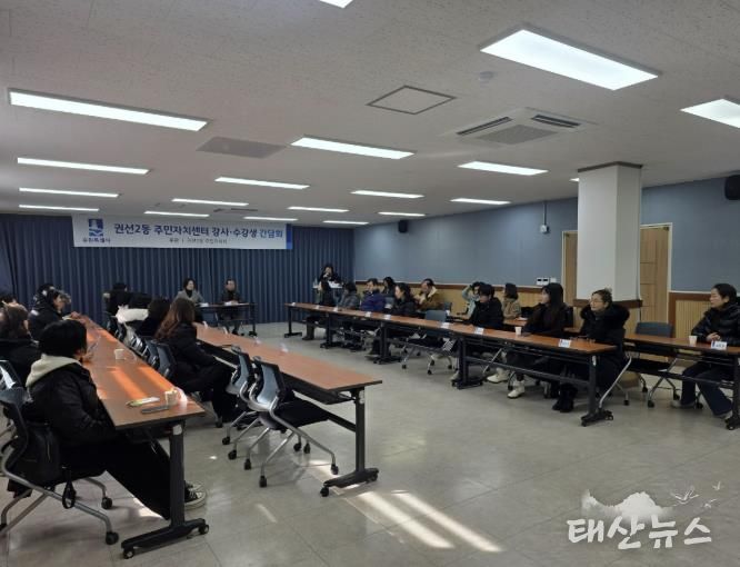 태산뉴스 이동욱 기자 | 권선구 권선2동 주민자치회는 지난 7일, 주민자치센터 프로그램 강사 및 수강생 대표 등 40명과 함께 주민자치 활성화를 위한 간담회를 실시했다.