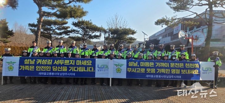 나용자 새마을교통봉사대 남양주시지대 대장은 “설 명절을 맞아 교통안전 캠페인이 시민 모두에게 안전운전의 중요성을 다시 인식하는 계기가 되길 바란다”며 “연휴 기간 교통량이 늘어나는 만큼 제한속도 준수와 전 좌석 안전띠 착용을 생활화해 주길 바란다”고 말했다.