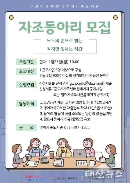태산뉴스 이동욱 기자 | 군포시가족센터 영어가족도서관(관장 박성희)에서 2026년 자조동아리를 모집한다.
