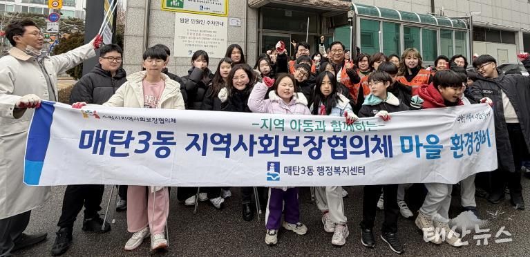 태산뉴스 이동욱 기자 | 영통구 매탄3동은 지난 11일 지역사회보장협의체, 지역아동복지센터, 관계 공무원 등 40여 명이 참여해 환경 정비 활동을 실시했다.