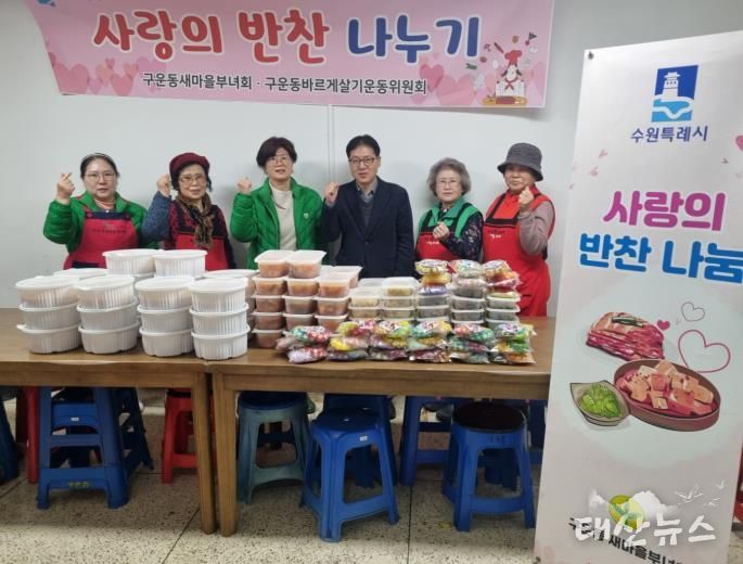 태산뉴스 이동욱 기자 | 수원시 권선구 구운동 새마을 부녀회는 지난 2. 11. 관내 어려운 이웃을 대상으로 반찬을 만들어 후원하는 ‘사랑의 반찬 나누기’ 봉사활동을 진행했다.