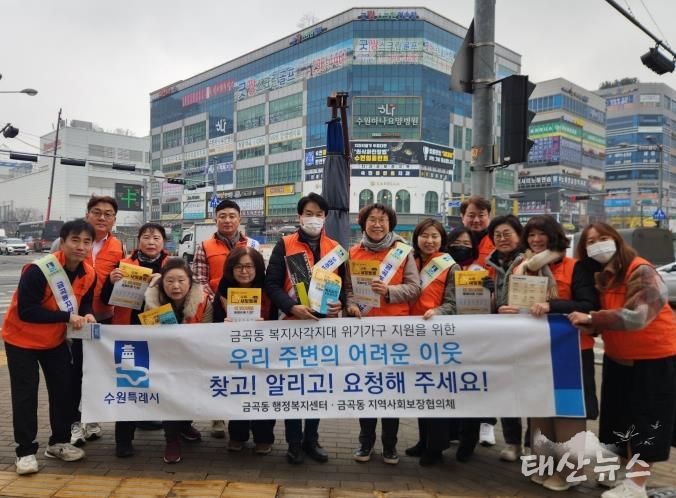 태산뉴스 이동욱 기자 | 수원시 권선구 금곡동은 11일 금곡동 지역사회보장협의체와 합동으로 관내 일대에서 ‘복지사각지대 발굴 캠페인’을 진행했다.