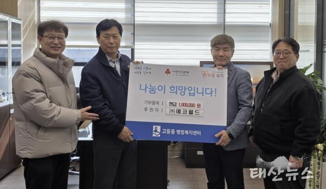 태산뉴스 이동욱 기자 | 수원시 팔달구 고등동은 지난 11일, ㈜에코월드에서 고등동 관내 지역주민을 위해 성금 100만원을 기탁했다고 밝혔다.