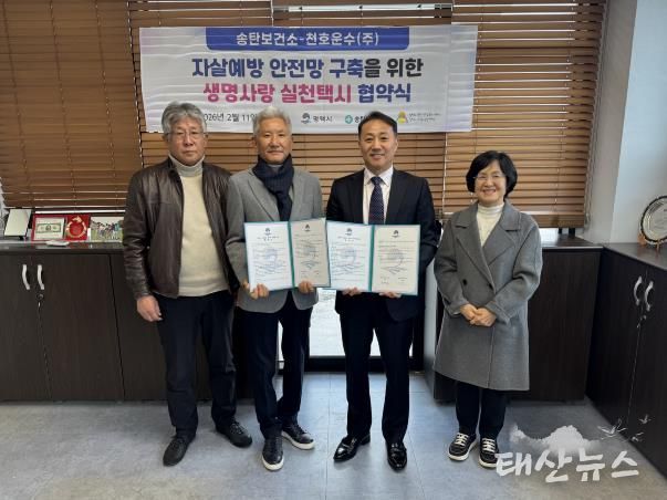 태산뉴스 이지율 기자 | 평택시 송탄보건소는 지난 11일 천호운수주식회사와 생명 존중 문화 확산과 자살 예방을 위한 ‘생명사랑 실천택시’업무협약을 체결했다.