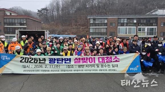 태산뉴스 이동욱 기자 | 파주시 광탄면은 지난 11일 광탄 시가지와 분수천 일대에서 민관 합동으로 설맞이 대청소를 실시했다.