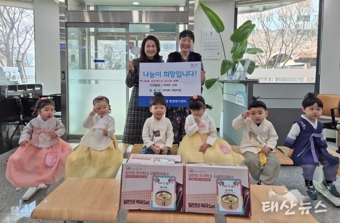 태산뉴스 이동욱 기자 | 수원시 장안구 조원2동에 위치한 토마토 어린이집은 지난 12일, 설 명절을 맞아 원생들과 함께 조원2동 행정복지센터에 떡국떡 10팩을 전달했다.