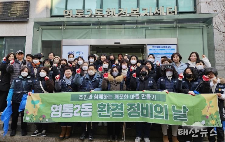 태산뉴스 이동욱 기자 | 수원시 영통구 영통2동은 지난 12일 행정복지센터에서 신동 원룸단지와 망포 음식특화거리에 이르기까지, 주민들의 쾌적한 설 연휴를 위해 환경정비 활동을 추진했다.
