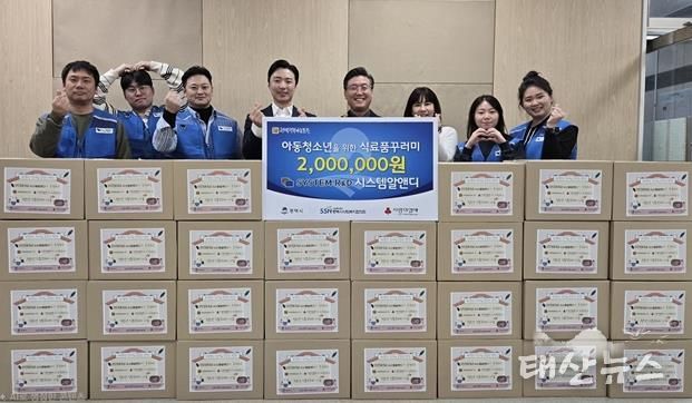 태산뉴스 이동욱 기자 | 시스템알앤디는 지난 11일 설 명절을 맞아 취약계층 아동·청소년들을 위해 200만 원의 식료품 꾸러미를 제작하여 평택행복나눔본부에 전달했다.
