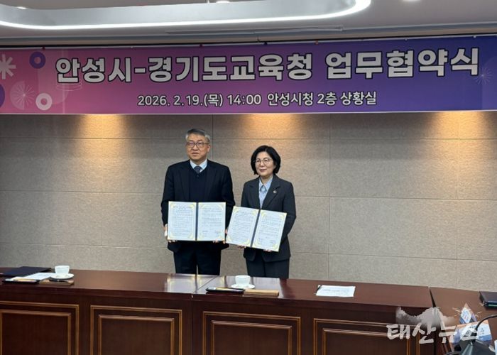 태산뉴스 김준수 기자 | 경기도교육청과 안성시는 2월 19일 안성시청에서 '안성미래교육협력지구와 경기공유학교 운영을 위한 업무 협약'을 체결했다.