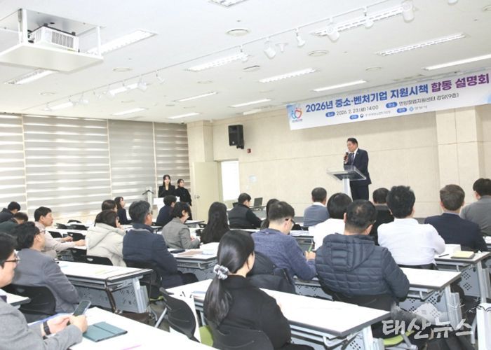 태산뉴스 이동욱 기자 | 안양시는 23일 오후 2시 동안구 인덕원동 안양창업지원센터 9층 강당에서 ‘2026년 중소·벤처기업 지원시책 합동 설명회’를 개최했다.