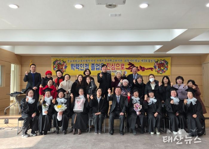 태산뉴스 김준수 기자 | 군포의왕교육지원청은 2월 11일과 23일 두 차례에 걸쳐 의왕시민학교와 의왕시청 문해 교육 기관 졸업식에서 평생교육의 결실을 맺은 총 13명의 졸업생에게 학력인정서를 수여했다고 밝혔다.