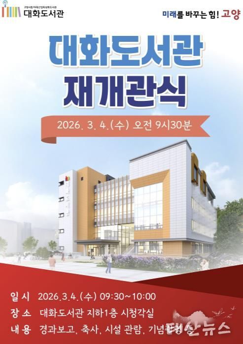 태산뉴스 이동욱 기자 | 고양특례시 대화도서관이 친환경 새 단장(그린 리모델링)을 마치고 오는 27일 재개관하고, 이를 기념해 3월 4일 재개관식을 개최한다고 밝혔다.