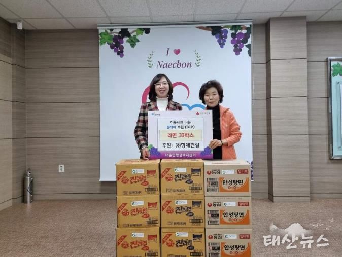 ㈜형제건설(대표 김화숙, 포천시 영중면 소재)은 내촌면 저소득 계층을 위해 라면 33박스(100만 원 상당)를 경기 사회복지공동모금회에 기탁하며 ‘이웃사랑 나눔 릴레이 50호’에 동참했다.