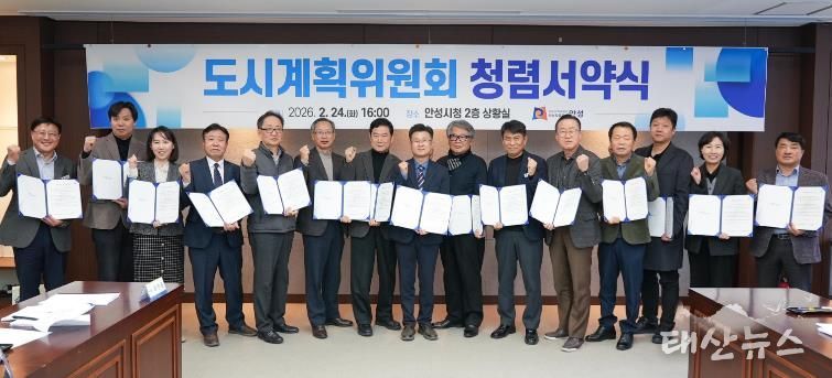 태산뉴스 이동욱 기자 | 안성시는 2월 24일 시청 2층 상황실에서 도시계획위원회 위원 및 관계 공무원이 참석한 가운데 ‘2026년 안성시 도시계획위원회 청렴서약식’을 개최했다.