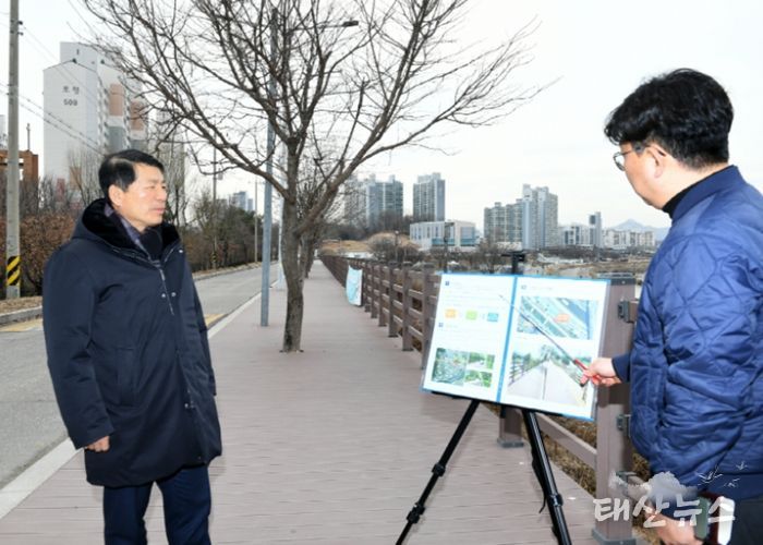 태산뉴스 이동욱 기자 | 구리시는 24일 하천변 둔치의 시민 이용 활성화와 보행 편의 증진을 위해 왕숙천 제방 내에 조성한 관망 산책로(데크) 설치 구간에 대한 현장점검을 했다고 밝혔다.