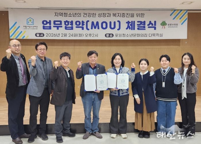 태산뉴스 이동욱 기자 | 의왕시청소년재단이 2월 24일, 지역청소년의 건강한 성장과 복지 증진을 위해 명륜보육원과 포일청소년문화의집 다목적실에서'지역 청소년의 건강한 성장을 위한 업무협약'을 체결했다.