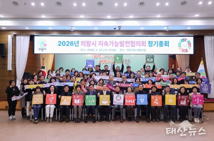 태산뉴스 이동욱 기자 | 의왕시 지속가능발전협의회가 2월 25일 시청 대회의실에서 지속가능발전협의회 위원 등 100여명이 참석한 가운데 2026년 정기총회를 개최했다.