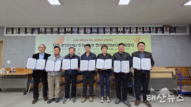 태산뉴스 이동욱 기자 | 지난 2월 23일 율면 주민단체들이 율면 기초생활거점조성사업 지역역량강화사업으로 2026년 지역 발전과 공동체 운영 강화를 위한 ‘협력협약(MOU)’을 체결하고 본격적인 공동 운영체계 구축에 나섰다.