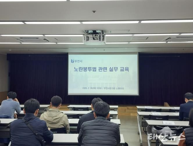 태산뉴스 이동욱 기자 | 부천시는 지난 26일 시청 소통마당에서 계약 담당자와 민간위탁 기관 담당자 등 40여 명을 대상으로 ‘노란봉투법’으로 불리는 개정 노동조합법 실무 교육을 실시했다.