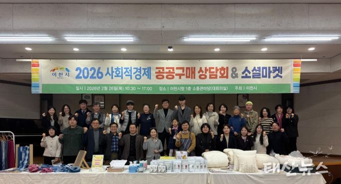 태산뉴스 이동욱 기자 | 이천시는 2월 26일 오전 10시 30분부터 오후 5시까지 시청 본청 1층 소통큰마당(대회의실)에서 ‘2026년 이천시 사회적경제 공공구매 상담회 & 소셜마켓’을 개최하고 성황리에 마무리했다.