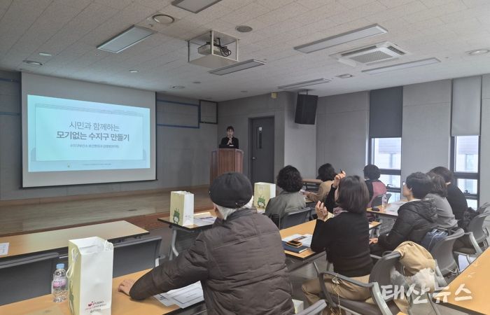 수지구는 ‘시민과 함께하는 모기 없는 수지구 만들기’ 사업을 추진한다. 개인하수처리시설(정화조)을 사용하는 가구와 300세대 미만 공동주택을 중심으로 유충 관리 활동을 전개한다. 사업 효과를 높이기 위해 2월 27일 통장을 대상으로 유충 구제 방법과 유충구제제 사용요령 등에 대한 교육을 실시했다. 교육을 받은 통장들은 각 가구에 유충구제제를 배부하고, 주민들이 정기 투여할 수 있도록 안내·독려하는 역할을 맡는다.
