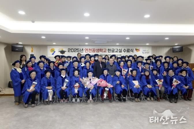 태산뉴스 이동욱 기자 | 연천군은 지난 2월 27일 통일평생교육원 대회의실에서 연천꿈샘학교 한글교실 수료생 59명과 각 반 문해교육사가 참석한 가운데 수료식을 실시했다.