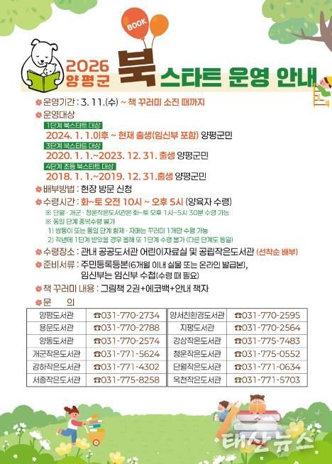태산뉴스 이동욱 기자 | 양평군은 오는 11일부터 ‘2026년 북스타트 사업’을 본격 운영한다고 밝혔다.