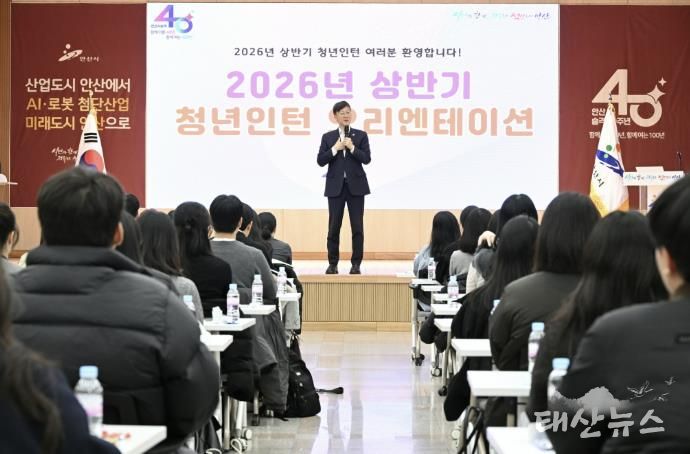 태산뉴스 이동욱 기자 | 안산시는 지난 3일 안산시청 대회의실에서 ‘2026년 상반기 청년인턴 오리엔테이션’을 개최하고, 70명의 청년인턴이 본격적인 활동에 들어간다고 4일 밝혔다.