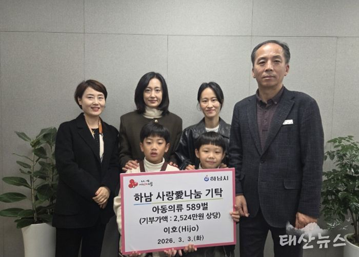 태산뉴스 이동욱 기자 | 지난 3일, 하남시에 소재한 아동의류 판매업체 이호(Hijo)가 지역 내 취약계층 아동을 지원하기 위해 아동의류 589벌(기부가액 2,524만원 상당)을 ‘하남 사랑愛나눔’ 성품으로 기탁하며 따뜻한 나눔을 실천했다.