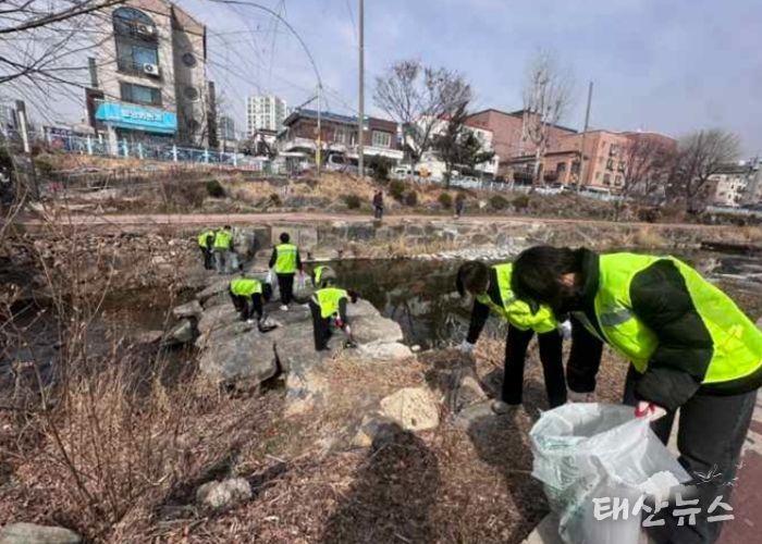 태산뉴스 이동욱 기자 | 수원특례시가 봄을 맞아 5일 수원천 산책로와 제방 일원에서 하천을 정비했다.