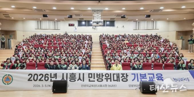 태산뉴스 이동욱 기자 | 시흥시는 3월 4일부터 5일까지 시청 늠내홀에서 지역ㆍ직장 민방위대장 681명을 대상으로 ‘2026년 민방위대장 교육’을 진행했다.