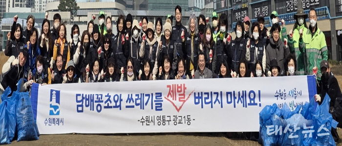 태산뉴스 이동욱 기자 | 영통구 광교1동 행정복지센터는 지난 3월 5일 통장협의회와 환경관리원 등 60여 명이 참여한 가운데 무단투기 지역을 중심으로 봄맞이 환경정비 활동을 실시했다.