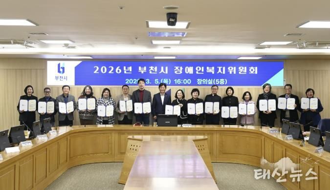 태산뉴스 이동욱 기자 | 부천시는 지난 5일 시청 창의실에서 ‘2026년 제1차 부천시 장애인복지위원회’를 열고, 장애인과 가족이 체감할 수 있는 실질적 복지정책 추진을 위한 소통의 시간을 가졌다.