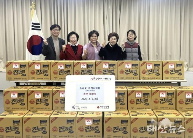 태산뉴스 이동욱 기자 | 구리시는 지난 3월 5일 ‘조사모(좋은 사람들의 모임)’ 연예인봉사단 구리시지회가 수택1동 행정복지센터를 방문해 지역 내 어려운 이웃을 위해 라면 40개들이 30상자를 기부했다고 밝혔다.