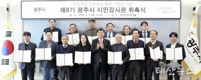 제8기 시민감사관은 총 20명으로, 광주시 거주 시민으로 구성된 명예감사관 5명과 전문 자격 및 실무 경험을 갖춘 전문감사관 15명으로 구성됐다. 임기는 2029년 3월까지 3년이다.