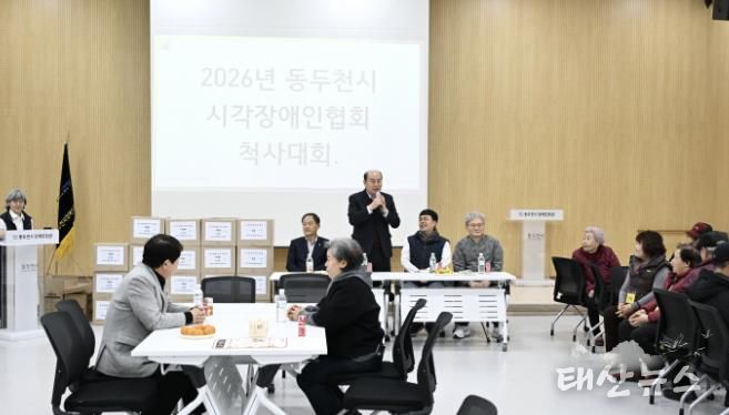 태산뉴스 이동욱 기자 | 동두천시는 (사)한국시각장애인연합회 동두천시지회가 회원 간의 화합과 친목을 도모하기 위해 지난 5일 동두천시 장애인회관 3층 대강당에서 ‘2026년 척사대회’를 개최했다고 밝혔다.