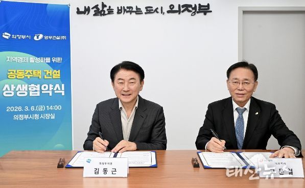 태산뉴스 이동욱 기자 | 의정부시는 3월 6일 ‘아파트 3무(無) 혁신 10대 프로젝트’의 실효성을 높이고자 양우건설(주)과 세 번째 상생협약을 체결하고, 지역 건설산업의 상생 기반 구축과 경제 활성화에 본격적인 시동을 걸었다. 특히 이날 협약식에는 양우건설(주) 고문철 대표가 직접 참석해 시와의 협력 의지를 표명했으며, 이를 통해 사업 추진에 대한 신뢰도를 한층 높이는 계기를 마련했다.
