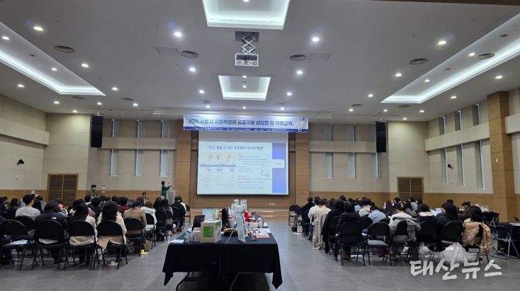 태산뉴스 이동욱 기자 | 시흥시는 지난 3월 6일 시흥비즈니스센터 컨벤션홀에서 시청 각 부서 및 동 행정복지센터의 사회적경제기업 공공구매 사업 담당자를 대상으로 ‘2026년 사회적경제기업 공공기관 우선구매 상담회 및 직원교육’을 실시했다.