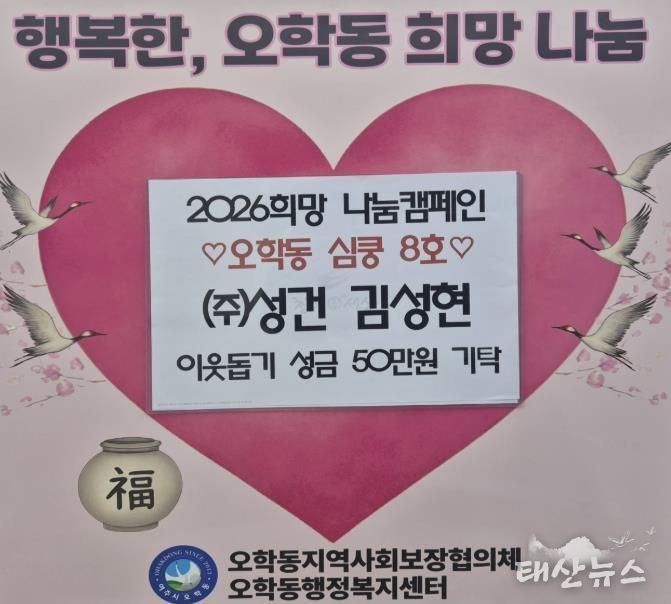 한편, 이날 기탁된 성금은 오학동 지역 내 어려운 이웃을 위한 복지사업에 사용될 예정이다.