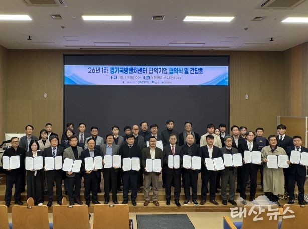 태산뉴스 김준수 기자 | 경기국방벤처센터가 올해 제1차로 선정한 협약업체 38개사를 대상으로 기업 협약식과 간담회를 열며 경기도 방위산업 생태계 가동의 본격적인 시작을 알렸다.