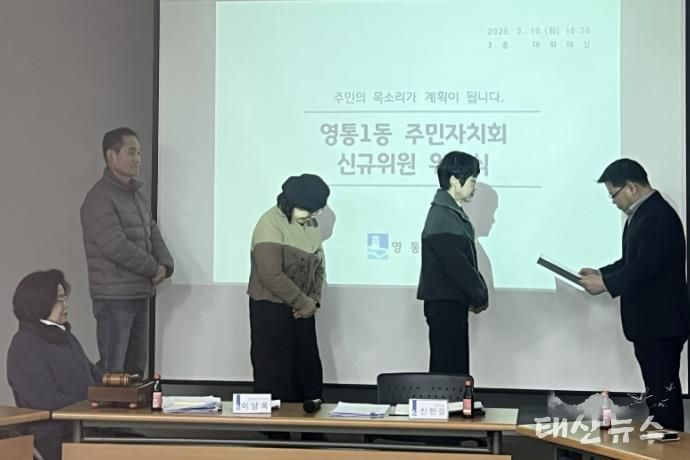 태산뉴스 이동욱 기자 | 영통구 영통1동은 지난 10일 영통1동 행정복지센터에서 3월 월례회의를 열고 신규 위원 위촉식을 진행했다.