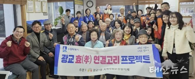 태산뉴스 이동욱 기자 | 수원시 영통구 광교1동은 지난 3월 11일 광교1동 지역사회보장협의체와 대학로 경로당이 ‘효(孝) 연결고리 프로젝트’를 추진하며 어르신 돌봄과 지역사회 협력 체계를 강화했다고 밝혔다.